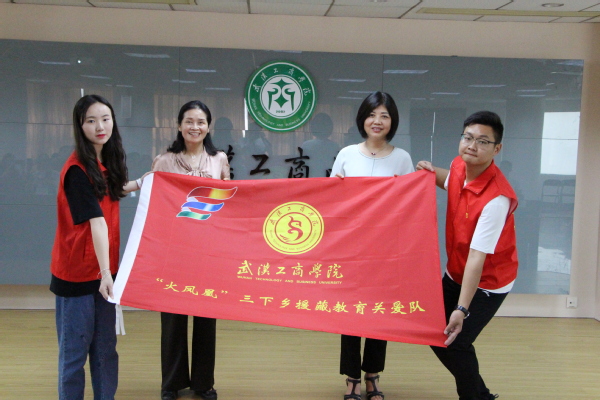 随后,民进武汉市委会专职副主委万世华与彭秀春董事长共同为“火凤凰”支教队授旗。