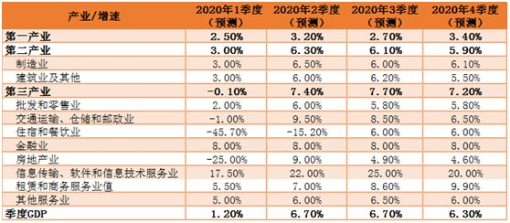 表2 2020年各产业季度增速预测