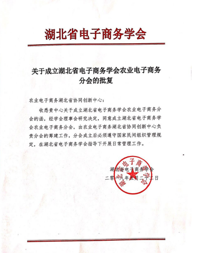 由武汉东湖学院农业电子商务湖北省协同创新中心申请,经湖北省电子商务学会理事会研究决定,同意成立湖北省电子商务学会农业电子商务分会,由农业电子商务湖北省协同创新中心负责分会的筹建工作,分会挂靠在武汉东湖学院。