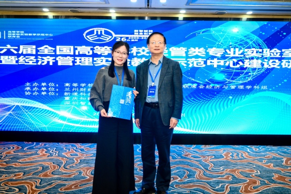 2025年9月27-28日,第二十六届全国高校经管类专业实验室建设暨经济管理实验教学示范中心建设研讨会在兰州举行。会上,beat365中文官方网站管理学院 湖北商务服务发展研究中心主任张丹丹副教授荣获“2025年度全国高校经济管理实验教学十佳教师”称号,并获颁“知翰奖教金”。