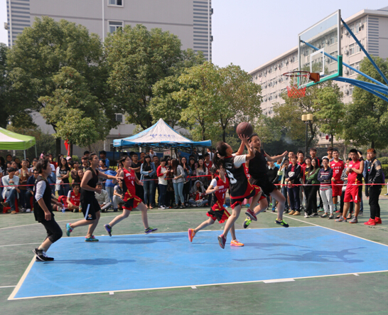 这次比赛也是分为三节,哨声响起后,第一节的比赛也拉开了帷幕。首先出场的是双方男生队的队员,刚刚一开始管理学院的人就抢到了球,又通过敏捷的身姿连投了两个球。随后继续教育学院的队员马上强球精准的往对方的球篮中投入一球。双方的比拼较量也在不断升级,第一节比赛一分钟倒计时开始了,场上的呐喊声越发的响亮。继续教育学院的队员在比分已经落后的情况下仍然士气高昂,在关键的时候投入一球。最后三十秒,紧张仍在继续,管理学院丝毫不给对方队员机会,迅速抄球投篮,又进一球。这时场上比分为21比4;休息少许,女生组比赛开始,虽然女生队只停留六分钟短暂的时间,但是她们的英姿将永远停留在赛场之上。所以,拼搏的结果或许并没有想象中好,但是那个过程是美好值得珍惜的。女生组虽没进球,可是赛场之上她们飒爽的英姿是令人向往的。稍作休整,男生组紧接着开始了第三节的较量,管理学院的队员配合有序,接球传球不断得分,前三分钟就接连进了六分。继续教育学院并不放弃,迅速找准时机侧身投球,“球进了”欢呼声此起彼伏。暂时的失败不算什么,有勇气拼搏才是成功。时间飞快流逝,在裁判宣布还有三分钟时,管理学院按捺不住了,不断犯规,这也使得继续教育学院队员利用这个机会接连进球,比分差距正在不断缩小。三十秒后,管理学院收拾心情又进了两个球,这时今天精彩的比赛也就告一段落了。场上管理学院以40 :21的成绩赢得了这次比赛。