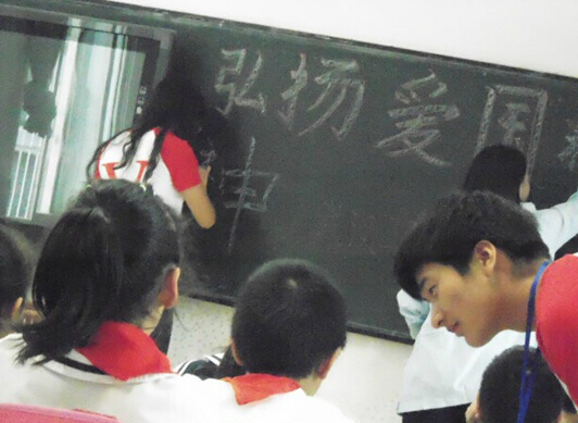 (本网讯:周琴)金秋十月,由beat365中文官方网站青协邓丽支教部主办的热爱祖国爱心支教活动于2014年10月27日在武汉市昙华林小学进行。此活动以“励志爱国,情暖深秋”为主题,让孩子们从小树立爱国思想,播种爱心。