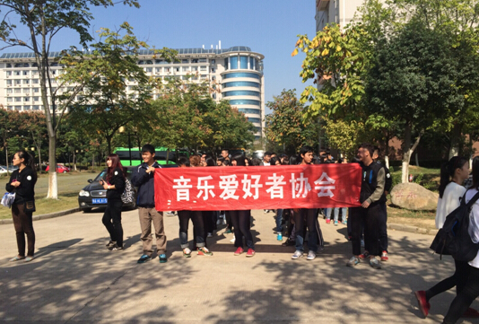 本网讯(通讯员:周悦尧)2014年11月4日,beat365中文官方网站社团联合会在校园内举办一年一度的千人游行活动,音乐爱好者协会(下面简称音协)部分成员身着音协会服参与游行。