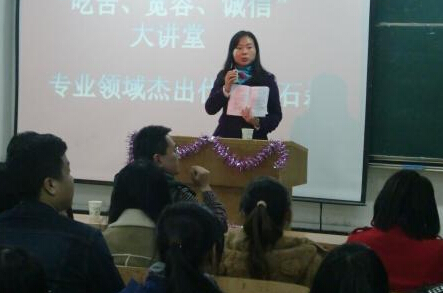 讲座的最后,陈玲书记上台发言。陈玲书记鼓励同学们要像石磊女士学习,成为一个有影响力的人。面对诱惑,如果不想被他人影响,就要成为影响他人的人,成为榜样。期盼同学们在将来都能成功,成为企业需要的人。至此,此次讲座圆满落幕。石磊女士的话必然给了同学们一个正确的方向,会让同学们少走弯路。同时一双双迷惘的眼睛也开始变得清晰,而充满渴望。
