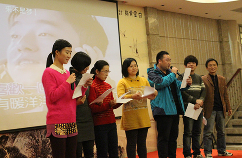 在随后进行的联欢活动中,文艺表演、互动游戏、现场抽奖轮番上演。经济与商务外语学院党总支副书记胡航与公共外语系教师鞠博演唱的歌曲《贝加尔湖畔》清新悠扬,拉开整场联欢活动的序幕;人事部部长亓小林演唱的歌曲《风吹麦浪》婉转动听,将观众带入秋日丰收的胜景;舞蹈《小苹果》、童声独唱及个人脱口秀三句半均由学院教职工子女表演,活泼可爱的孩子们将现场气氛推向高潮。穿插其中的游戏环节“报纸拔河”及“吸管传递”吸引了近30位老师踊跃登台。间隔举行的三轮现场抽奖更是激动人心,活动设三等奖3名、二等奖2名、一等奖1名,最终来自公共外语系的王凡老师拔得头筹。临近尾声,学院领导及教职工代表合唱歌曲《相亲相爱》,在一片欢乐祥和的气氛中,活动圆满结束。