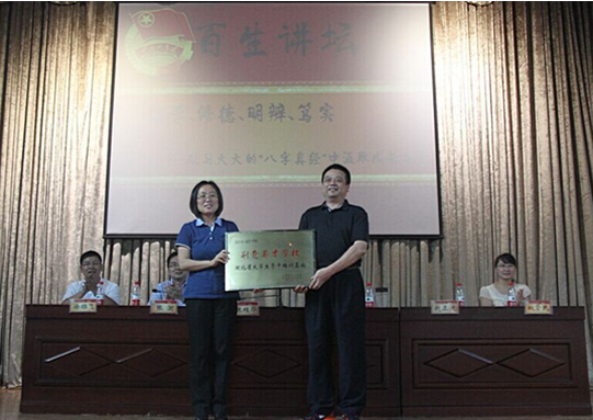在集中培训期间学员们举行了“百生讲坛”示范活动。团省委书记、“荆楚英才学校”校长张桂华、团省委副书记、“荆楚英才学校”副校长张澍出席活动并对活动进行点评,活动邀请省直机关工委党校校长汪连天作为点评专家。武汉生物工程学院党委书记赵正洲出席活动,2015年“荆楚英才学校”全体学员参加活动。
