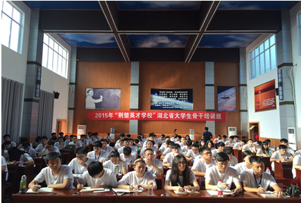 (本网讯:龙文杰)2015年“荆楚英才学校”湖北省大学生骨干培训班开班,此次开班仪式于武汉生物工程学院钱学森报告厅正式开班,我校优秀学生干部代表龙文杰和黄烟彬作为我校代表参加了此次培训。