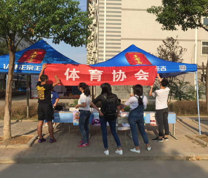本网讯 (通讯员:体育协会)2016年9月20日至22日beat365中文官方网站体育协会在体育场(篮球场)前马路两边进行社团招新活动。此次活动主要是为了欢迎2016届新生,进一步加强我校体育活动建设,为协会注入新鲜血液。同时使新生在体育活动中放飞梦想,挥洒激情,在运动中增进彼此情谊,团结一致,焕发青春活力;并帮助新生尽快融入集体,弘扬体育精神,营造一个文明向上的校园文化氛围。