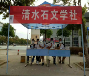上午八点,各位清水石的部员们已经开始忙的不亦乐乎。迅速在走道旁打出横幅,为报名者准备了座位,炎热的夏天,更少不了一把扇子。为更好的彰显文学社这些年来的硕果,清水石的部员们制作了宣传手册,方便报名者能够更加直观的了解文学社。一切准备工作就绪,用餐的时候到了,也是轮流看守,不让任何文学爱好者多等待。中午,广大新生陆续过来询问,清水石部员详细的为他们介绍,了解过后都积极的报名,新生们激情澎湃,清水石的部员们也乐开了怀。忙碌的时刻快接近尾声,第一天的招新也快结束了,劳累了一天的清水石成员们却乐此不疲,准备明天继续发现潜藏在人群里的才子佳人,招纳更多博学的人。