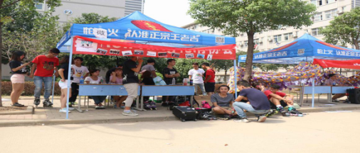 招新工作于9月20日正式开始,在早上7点30分我们的工作人员就做好了招新摆点处的各项准备工作,到了8点16届的学弟学妹们便陆续来到招新摆点处咨询。