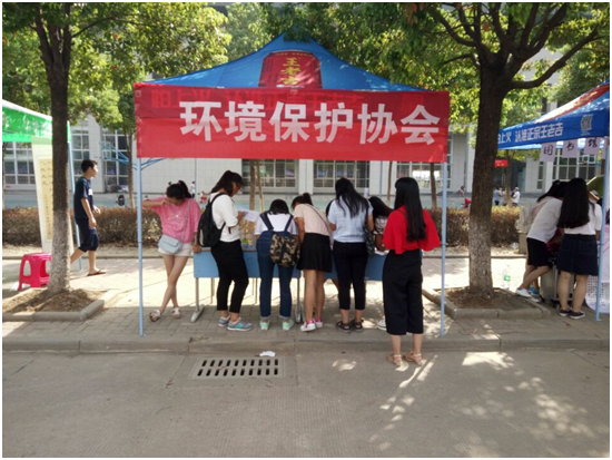 上图为招新过程中摆点照,众多新生对公益报以热情积极的态度,希望加入环境保护协会,协会理事会也积极响应,营造了一个良好的招新氛围。