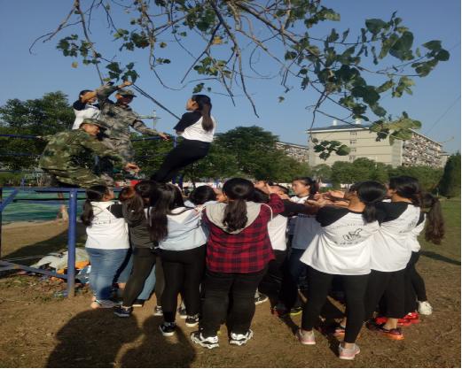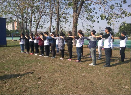 竞赛过后我们开始玩起了第一项游戏“教官说”,在教官的口令下完成动作,要求在进行每一项动作前都要有“教官说”这三个字才能做出相应的动作,否则就会出局,大家互相嘲笑着出错的人,幸灾乐祸的看他们接受惩罚,慢慢地大家开始熟络起来,也点燃了大家的热情,气氛开始活跃起来。在教官的带领下又陆续玩了前方有难后方支援,急速六十秒,过电网,踩报纸等团队合作游戏,成员们也都非常积极地参与,为自己的小组建言献策,相互团结共同完成任务。通过这些游戏,英语俱乐部理事会们展现了极高的集体荣誉感和协作能力,理事会们的默契度也得到了极大地提高。