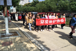 活动开始之前,校社团联合会进行了开场舞的表演,尽管天气比较冷,同学们还是卖力的表演好各个动作,十分的有活力,当时正值下课,许多同学都停留在综合楼门口观看了开场表演。游行途中,各个社团都大声叫喊着自己社团的口号,我们环协的成员也大声的喊着“爱无限,绿无边。”