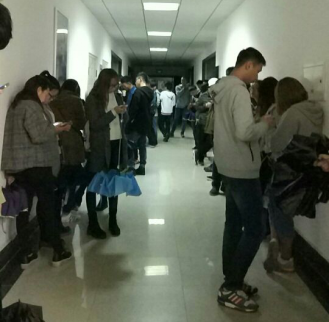 漆黑的寒夜,这也是更改时间后的第一次培训,以为大家因为不适应,不能如时参加培训,大家匆匆忙忙赶去培训,到了实验楼却看到这样的景象,因为教室门没有开,外面等了许多参加培训的小伙伴。我和小伙伴心想,这么多人,进去位置还能有多的吗?