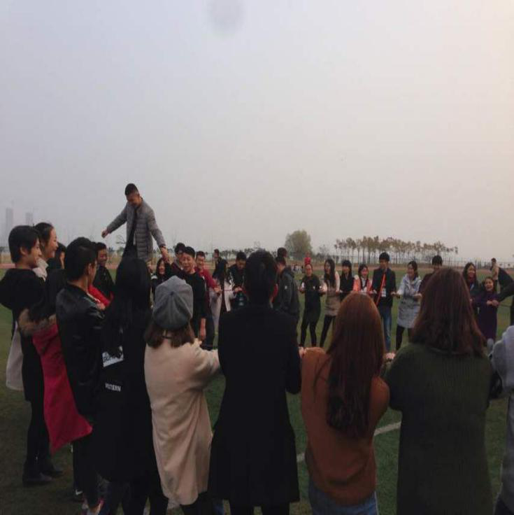 看见小伙伴们站在细细的绳索上颤颤巍巍,但却咬牙的在上面走了一圈,成员们是不是既紧张又兴奋呢?不倒长城是由所有成员拉紧一根结实的绳索围成一个人可以在上面行走的圈,该游戏看起来很危险,实则由于各种力的作用是非常安全的。这就要看看你信不信任你脚下拉绳索的伙伴了。所幸电脑协会的小伙伴们相互之间还是很信任的,很多人都跑到上面去溜达了一圈。最后一个游戏就是真正的不倒长城了,成员们一个接一个的相互支撑着,真的是一个倒,一片倒。大家耐心的鼓励着,最终完美的结束了这个游戏。