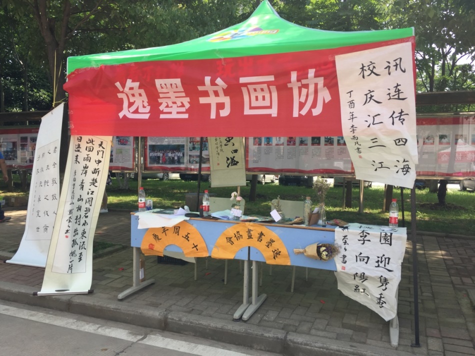 本通讯(通讯员:邓春瑛)十五周年社联社团文化体验日,为了丰富同学们的课余时间和文字知识面,逸墨书画于5月9日在外语楼主干道摆点进行“甲骨文猜猜猜”以及书法体验活动。
