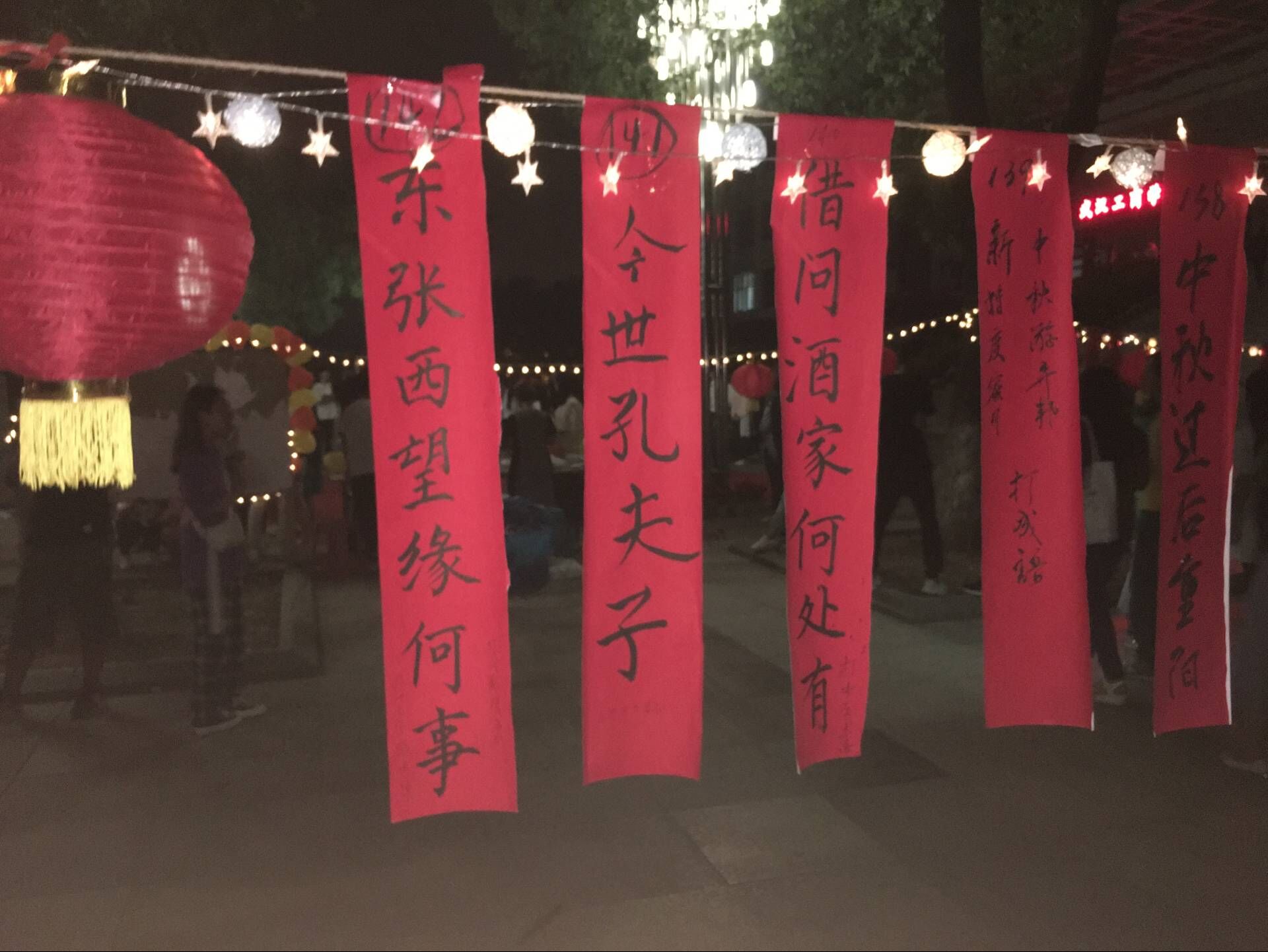 整个活动从晚上六点持续到九点,不仅缓解了同学思乡之情,丰富了同学们的校园生活,也更好地弘扬了中华民族的传统文化。各校园添加了别具一格的气氛。、