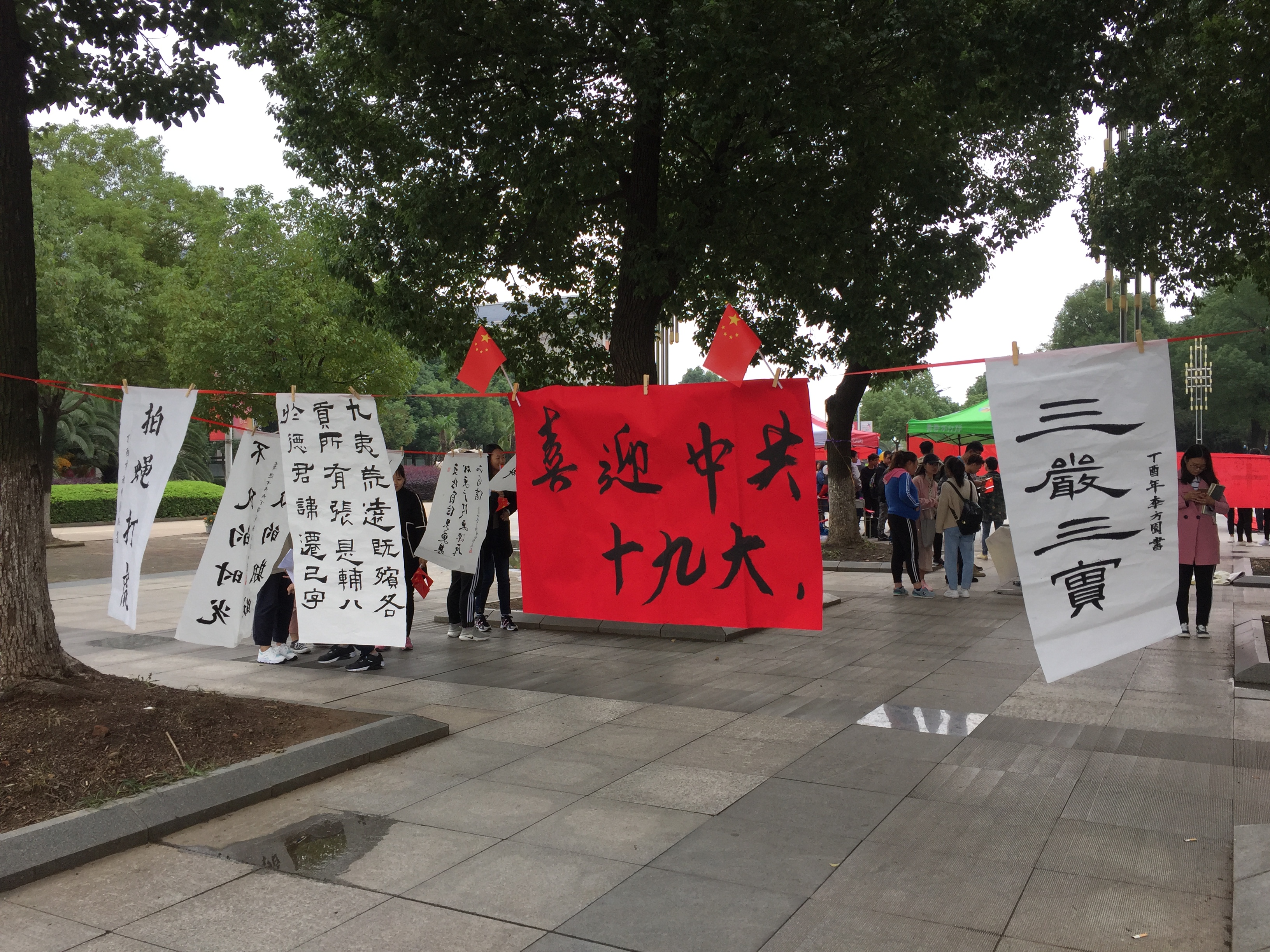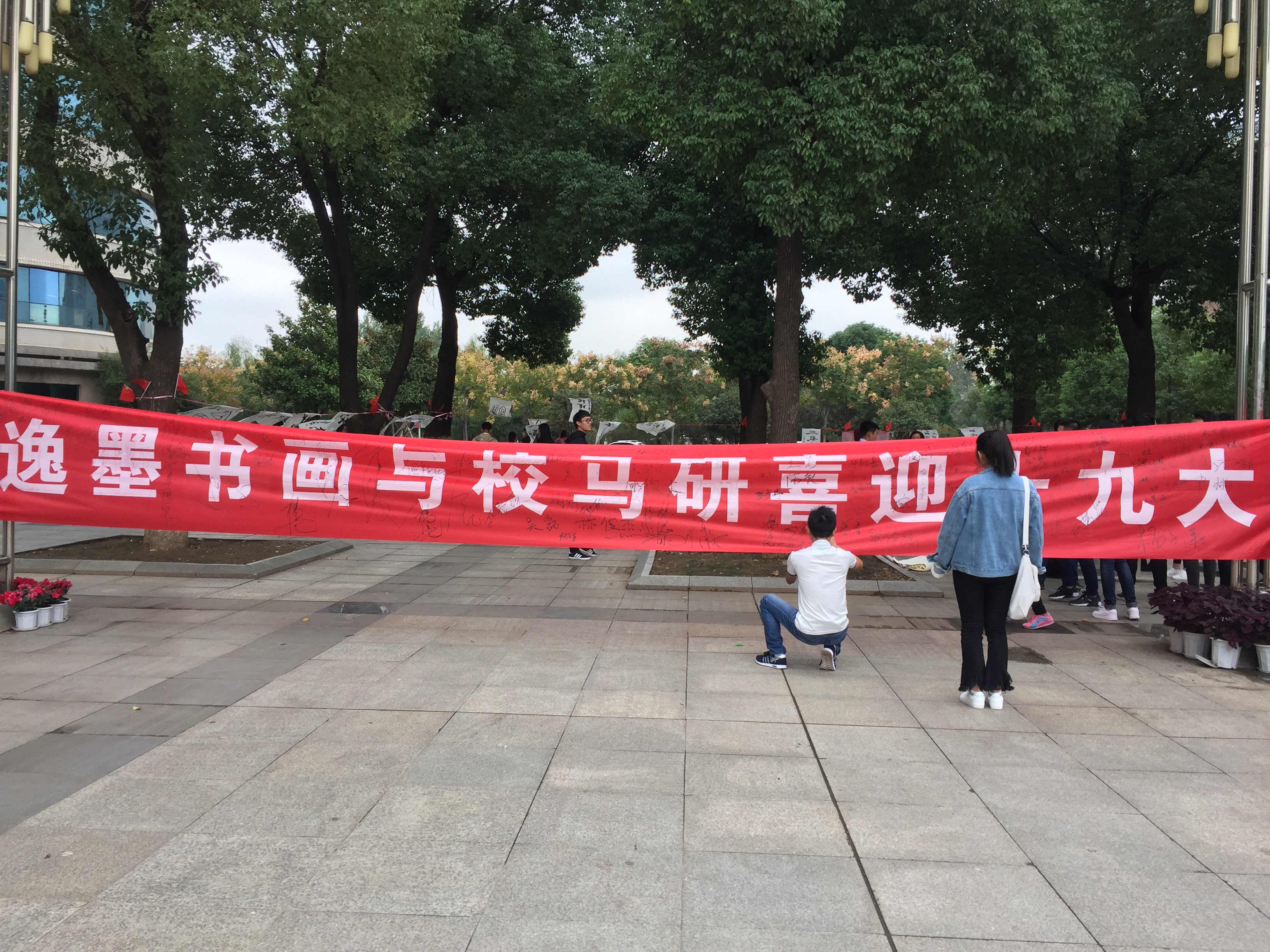 精彩过后,我们邀请来往的同学们纷纷在现场展现自己的书法才艺,交流书法。充实的时光总是会过的很快,下午2点半,喜迎十九大活动正式结束,落下了圆满的帷幕。