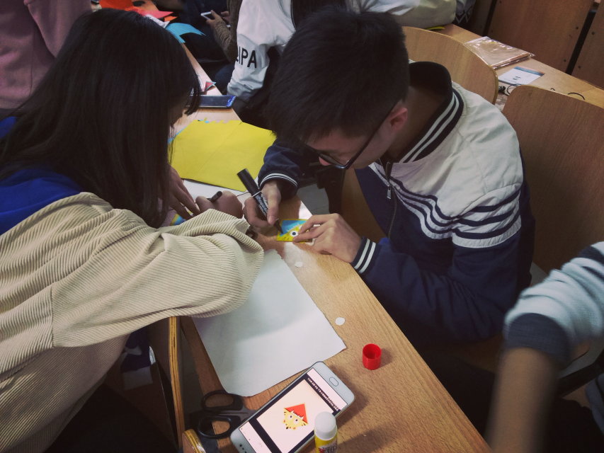 活动分为三个部分,首先,会助在台上讲解此次的授课内容——创艺书签,材料简单:彩色卡纸、双面胶或是固体胶、马克笔还有剪刀。步骤简洁,就是要细心,有想象力。然后就开始授课,艺能部的同学坐在单排,其他人坐在双排,方便教授。授课的过程中,大家都很认真,做出的东西也很有特色。小兔子、小老虎、小老鼠……各种可爱的小动物跃然于桌上。艺能部陈芳说:“这个书签很简单,也很实用,在图书馆或者是宿舍里看书时,看到自己做的书签心情会很好。送给别人,别人应该也会很喜欢。”“嗯嗯,就是这样,我看到就好喜欢。”宣传部的一个部委朱晨说。据其部长说朱晨只有16岁。看来还真是喜欢这种可爱的东西啊。
