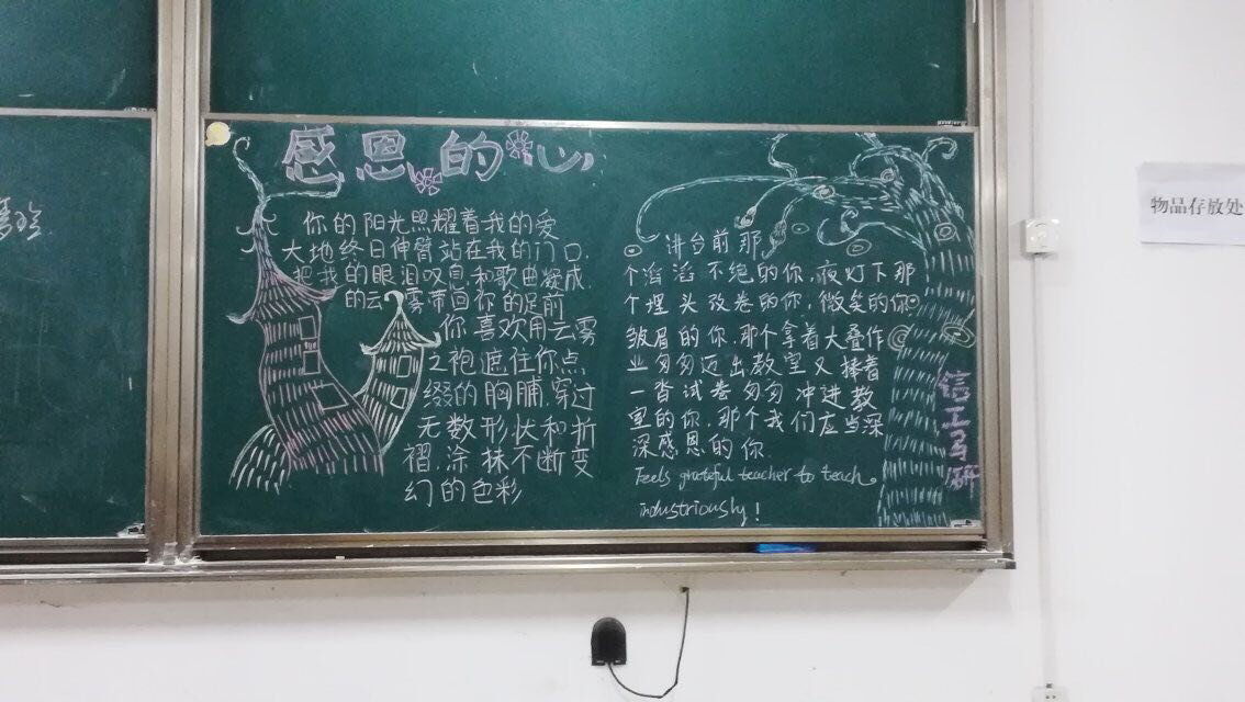 在进行了一系列绘画准备和布局构思后之后,由各分会的人到相应学院的晚自习班级进行板报宣传,以手工艺术的方式展现对父母老师朋友的爱,并且呼吁更多的人去感恩。通过举办这次感恩活动,给同学们提供了一个表达自己恩情的机会。让同学们用手去画,用眼睛去看,用心去感受感恩。以此来培养一种情感,在对待身边的人和事时,都能以一颗虔诚的心去感受。