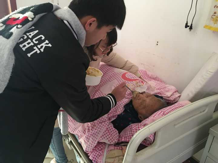(志愿者们正在给老人喂饭 摄影:侯文成)