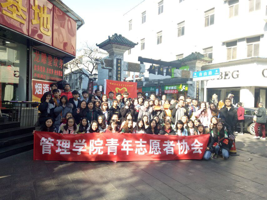 管理学院分团委讯(通讯员 杨红摄影:兰苏)2017年12月9日管理学院青年志愿者协会来到户部巷进行义务卖报的活动。此次活动主要是为了为贫困的山区孩子们筹集资金改善他们的生活质量。即使天气渐寒,志愿者们还是满腔热血的到达志愿活动地点。