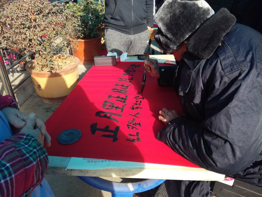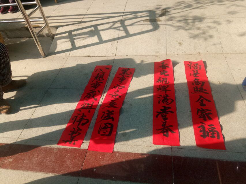 (书法协会为老人们亲自写的对联 摄影:兰苏)
