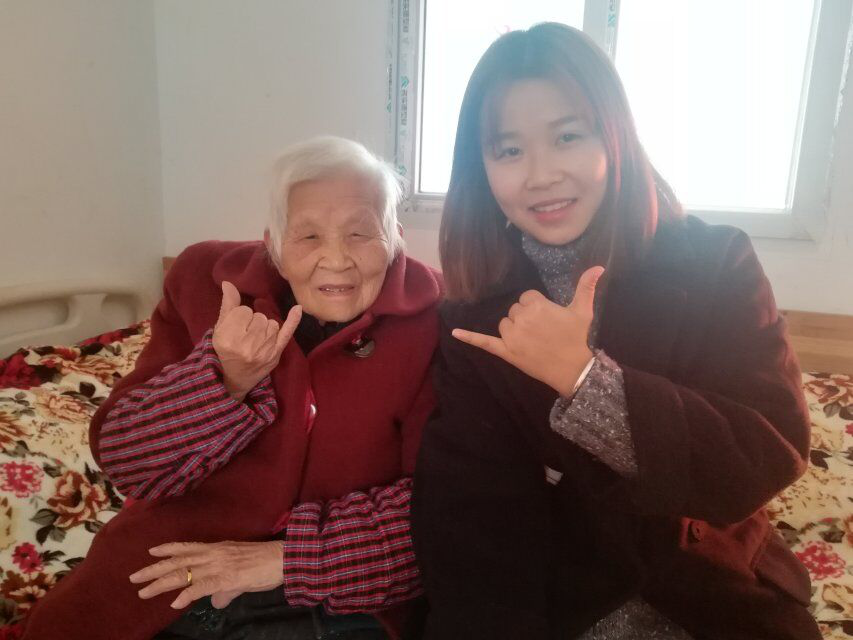 一位坐在屋内不方便的奶奶看到志愿者的到来喜笑颜开,奶奶和志愿者们玩得的不亦乐乎,和志愿者们一起来了一场流行手秀。大家都尽显其才,有的为老人们唱歌跳舞,有的用他们优秀的交流能力和老人讲述身边的故事,有的拿起扫帚拖把就为养老院清洁打扫。