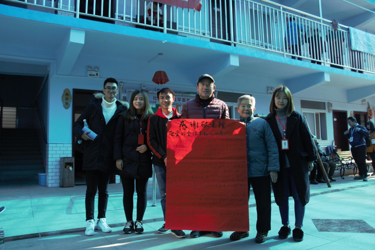 图中的感谢信是喻婆婆送给敬老院的,她非常感谢敬老院的领导们给予了她帮助,并委托志愿者们将她用信纸写的感谢信转写到红纸上面。志愿者们都因这次的养老院之行感触万分:“其实非常感谢养老院能给我们提供这样一个活动的机会,不仅仅是让我们在空余的时间里做了一些力所能及有意义的事情,还让我们通过这种活动亲身体会到了陪伴与关怀的重要性”。