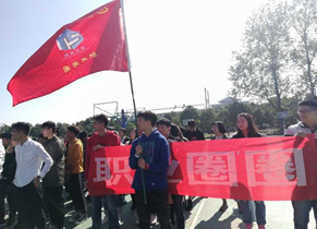 在中午12点我们社团也和其他社团一起举行了巡游,我们社团的口号是:职引人生,圈出梦想。与我们社团的名字也非常切合。本次巡游是由会长带领,每个部门来一到两个人进行游行,过程大约15分钟。