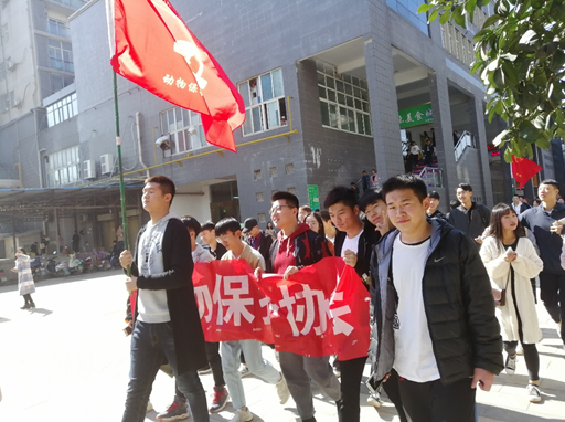 八点招新正式开始,但是学生都匆匆忙忙赶去上课,协会招新的收获并不大。等到中午十二点下课的时候,各社团巡游热火朝天,一路从综合楼来到篮球场,吸引了众多学生前来观望。动物保护协会则把握住此机会,积极利用协会特色进行宣传,使得不少新生前来报名,人数虽不及第一次招新时络绎不绝,但也给予了摆点社员极大的信心。成员们也借此时机大力宣传协会“校园不养宠”理念,让更多人能了解和认同这一想法。