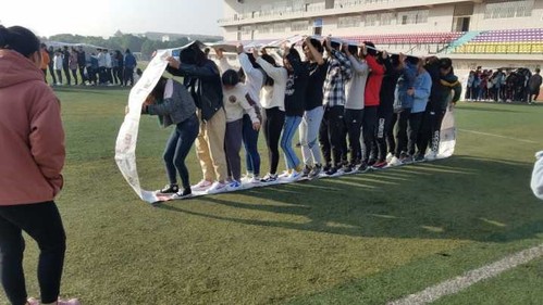此次运动会是为了11月份部员们辛苦的摆点活动而展开的,想让大家放松一下,都能玩起来,同时增加感情。活动于早晨9点钟开始,首先进行的项目就是无敌风火轮,队员们把报纸粘贴在一起,15人依次站在报纸上走向终点,发扬了各部门团结合作精神。之后,协会成员一起完成了许多项目,像“猜成语接龙、集体跳长绳、袋鼠跳”等一些集体的项目,尽管有些累但活动十分有趣,还增进了协会会员之间的团结力。
