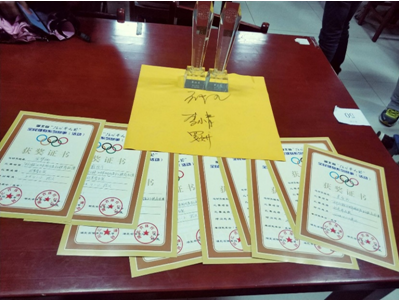 其中,男女混合团体赛荣获得第三名,分别有罗君超、贺诗斌、景智武、侯莹莹;女子团体赛荣获得第二名,分别有:侯莹莹、罗婷、王小妹。个人获奖,分别是第十四名的王小妹、第十一名的罗君超、第七名的侯莹莹。