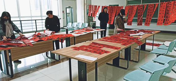 虽然自习室有些小冷,飘着袅袅的雪花,但抵挡不住我们参加活动的热情,活动现场春意融融,温馨热可以过来免费领取一副春联,如果你有别的想要写的,还可以让咱们教学部现场帮你写呢虽然天气寒冷,但仍然抵挡不住同学们对春联的热爱,同学们持续不断地来到自习室品味欣赏着这些春联,领着他们心仪的对联脸上挂着笑容,上课期间人不是太多,等到中午放学的时候,同学们都直接从教室蜂拥而上过来,活动现场一下子变的很热闹,大家热情很高,同学们对春联投来阵阵欢呼声,连连对精妙的的字体夸口称赞,看着大家拿着春联愉快离开的背影,觉得此次活动很有意义。