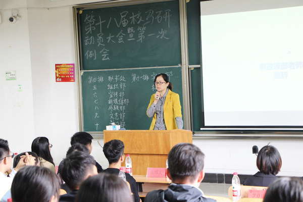 本次动员大会,和往年一样由思政课老师致辞作为开场。校马研是由思政课老师带领的一个协会,我们一直秉承着“坚持初心,紧跟步伐”的决心,努力建设着校马研,让它成为最好的。如今校马研已发展到了第18届,并在不断成长、不断收获、不断进步。协会的进步,正是因为马研各部人员的互相帮助和共同成长。也如同第17届校马研主席雷霆之言:“我们不停实践,在工作中收获,还及时反思。”