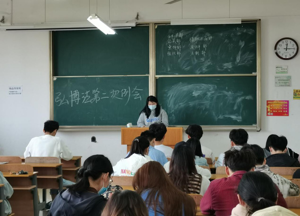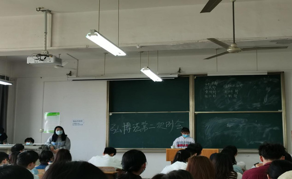 2021年3月29日12时10分弘博法学会于综合楼513教室召开了第二次例会。本次例会由秘书部部员马娜主持,秘书部部员黑锦爔记录,参与此次例会的是弘博法学会全体成员。第二次例会的主题主要为部门对近期工作的汇报总结和对社团下阶段活动的整体的规划安排。