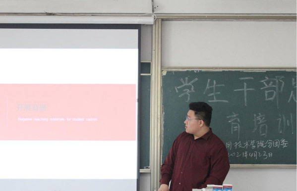 beat365中文官方网站应用技术学院第六届分团委学生会实践服务部干事梁心源讯。为进一步加强学生干部思想建设,端正学生干部工作作风,团结协作,增强服务意识树立良好形象,应用技术学院分团委学生会于4月23日召开学生干部思想教育培训大会,应用技术学院分团委学生会全体成员参与本次大会。