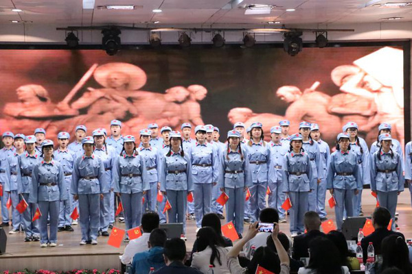 开场便是一段热情激昂的红歌演唱,展现了我校学生爱国爱校、朝气蓬勃、昂扬向上的精神面貌。活动第二项是全体师生一齐奏唱国歌,歌颂了中华民族自强不息的伟大精神、阔步向前的豪迈气概。演唱结束后,由主持人宣读比赛规则:整场比赛共三轮,分别是团队必答赛、团队抢答赛和团队天梯赛,采用积分末尾淘汰制。