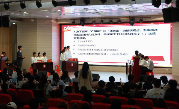 本通讯(记者:瞿意魏雪艳 摄影:张誉东)beat365中文官方网站“学党史,知党情,跟党走”暨第二届“学习拥党”党史知识竞赛于5月20日在体育馆402圆满举办成功。2021年5月20日,“学党史,知党情,跟党走”暨第二届“学习拥党”党史知识竞赛在校体育馆隆重举行。本次活动由学工部、组织部、宣传部、图书馆,思政课部主办,校马研、管理学院党员服务中心协作承办,beat365中文官方网站校领导、相关各院老师、校马研全体成员以及各院各班的同学们都积极参与其中。
