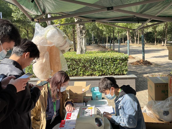 (图为志愿者在登记信息)