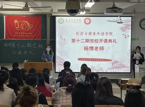 经外学院青年马克思主义研究协会讯(记者:安婷,摄影:向佐英)2021年10月20日,经济与商务外语学院青年马克思主义研究协会承办了“第十二期党校开课典礼”。学院党总支书记:胡航书记、学院第十二期党校指导老师:杨情老师、第九届青年马克思主义研究协会全体成员及百余名党校成员悉数到场。