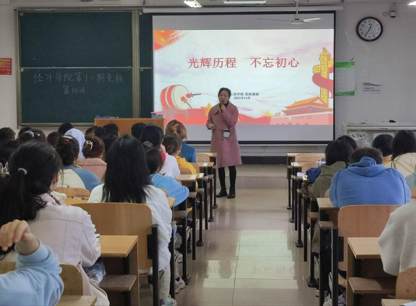 2021年11月10日,党校第四讲由思政课部专职教师李枥霖老师主持。李枥霖主修思想政治教育专业,致力于理论与实践相结合,多次带领学生开展暑期社会实践、参与大学生科研立项。曾主讲过《毛概》等课程,也曾发表优秀论文《高校学生干部的教育培养》等。