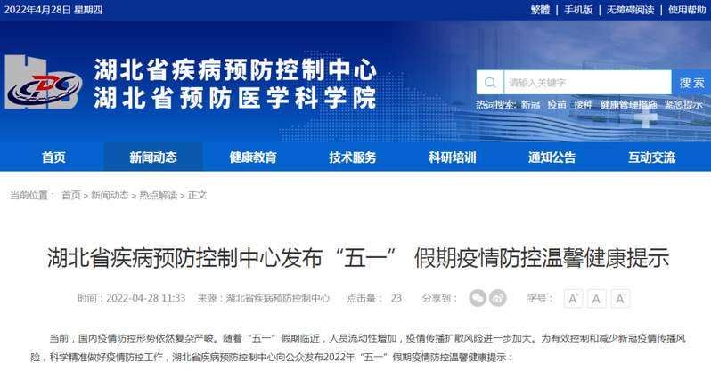 事关“五一” 假期!湖北疾控最新提示