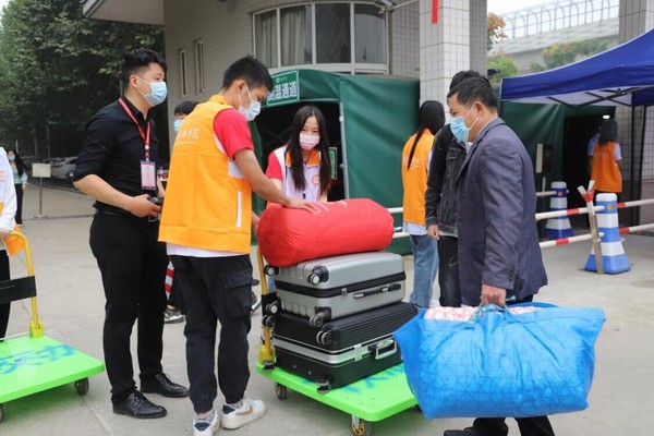 校团委宣传部讯(记者:马瑶 摄影:胡思敏)2020年9月26日和27日,学校开展了为期两天的迎新工作。其中学校组织的“一对一迎新”和校团委下设的校学生会、校社联、校艺术团、校团宣、校团组、校青协、校马研七大校级组织,是本次迎新工作的主力军。在学校志愿者的积极帮助下,2020届迎新工作顺利完成。