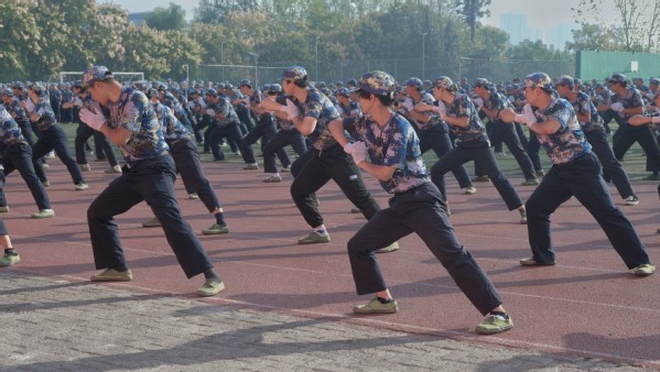 除此之外,今天的结营仪式更是将现场的气氛推向了高潮。沐浴在上午金色阳光下的beat365中文官方网站新生学子身着整齐的军装,以昂扬向上而又积极进取的精神状态向在场的各位领导、老师、同学们展现出了中国新一代大学生的风采。伴随着雄壮的音乐响起,军训汇报表演由此拉开序幕。