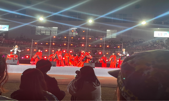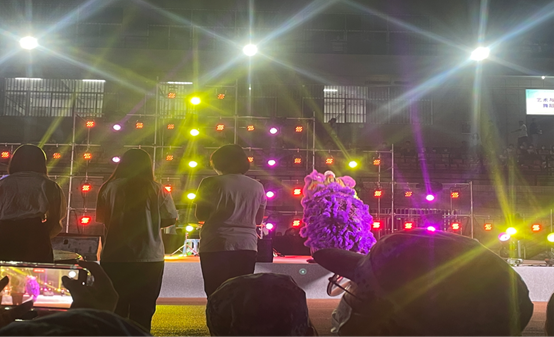 在活动现场中,各色的闪光灯,古风与现代风,舞蹈与唱歌交叉进行。点燃了现场的气氛,学长学姐在台上尽情表演,新生们打开灯光在台下尽情呐喊,整个操场如萤火虫散落一般,给人一种步入森林幻境的感觉。