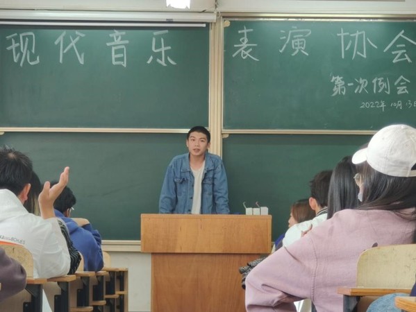 现代音乐表演协会讯(通讯员:陈煜 摄影:徐志鹏)10月13日中午12点10分,在综合楼306教室,召开了现代音乐表演协会的第一次例会。本次活动邀请了现在音乐表演协会会长以及其他各部部长,为给协会成员讲解20周年校庆活动节目报名规则以及跟新成员讲解各部门须知。本次例会旨在让热爱音乐的协会成员筹备节目参加校庆选拔,也能让新成员能更了解协会。