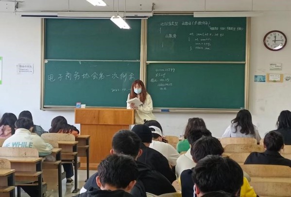 电子商务协会讯(记者:谢宇 摄影:蒋成)2022年10月11日12时10分,电子商务协会于综合楼313举办第一次例会,本次例会由电子商务协会会长主讲,参会人员有各部门部长及部员。为了说明每两周举行一次例会的常态化以及了解协会成员的时间情况,以便进行后续的培训学习工作。