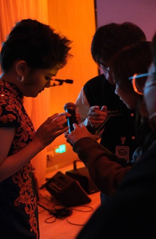 舞台上的风采离不开幕后人员的不断努力和付出,不断试验现场设备以及直播设备,每一次精彩的背后都是工作人员的不懈付出。化妆间和过道上不断有演职人员进行最后的练习,紧张的背后是对舞台的认真以及对武工商的祝贺与致敬。