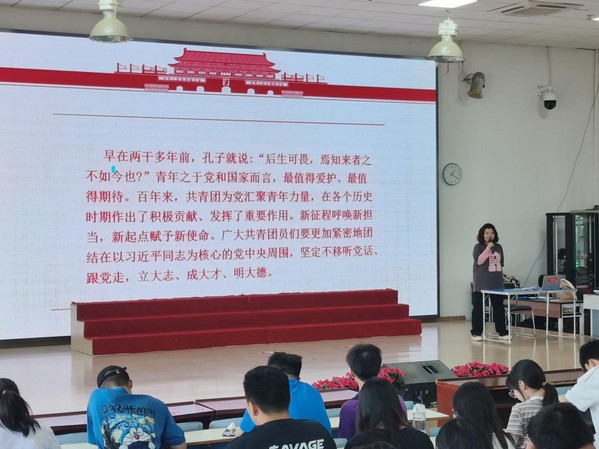 徐可老师的讲解主要从共青团的诞生以及共青团的发展历程两个方面来讲解。徐老师的讲解主要以增加各团支书对共青团的诞生以及发展的了解为主,从“五四运动”到“五四精神”为各团支书讲解了共青团成立以来的每个重要节点,为团员发展工作打下了坚实的基础。同时,徐老师还呼吁广大团员积极开展共青团相关活动,提高广大团员参与共青团相关工作的积极性。